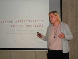 Ulrike BossmannUlrike Bossmann, die Potentialistin, gab einen guten Einblick über Herausforderungen, vor die Unternehmen und Berater durch den demographischen Wandel gestellt werden. Wissenschaftlich fundiert und gleichzeitig mit hoher Relevanz und Nutzbarkeit für die Beratungs-Praxis führte Ulrike Bossmann durch den Abend.